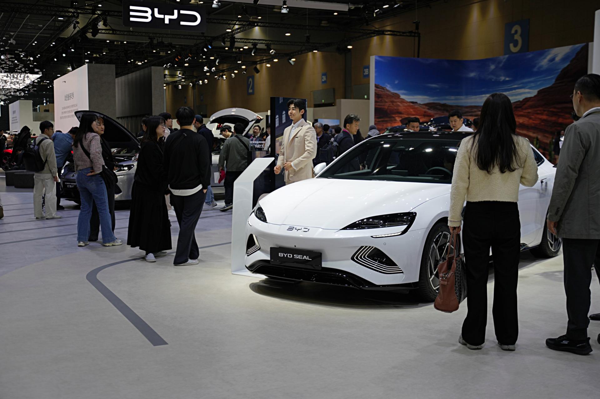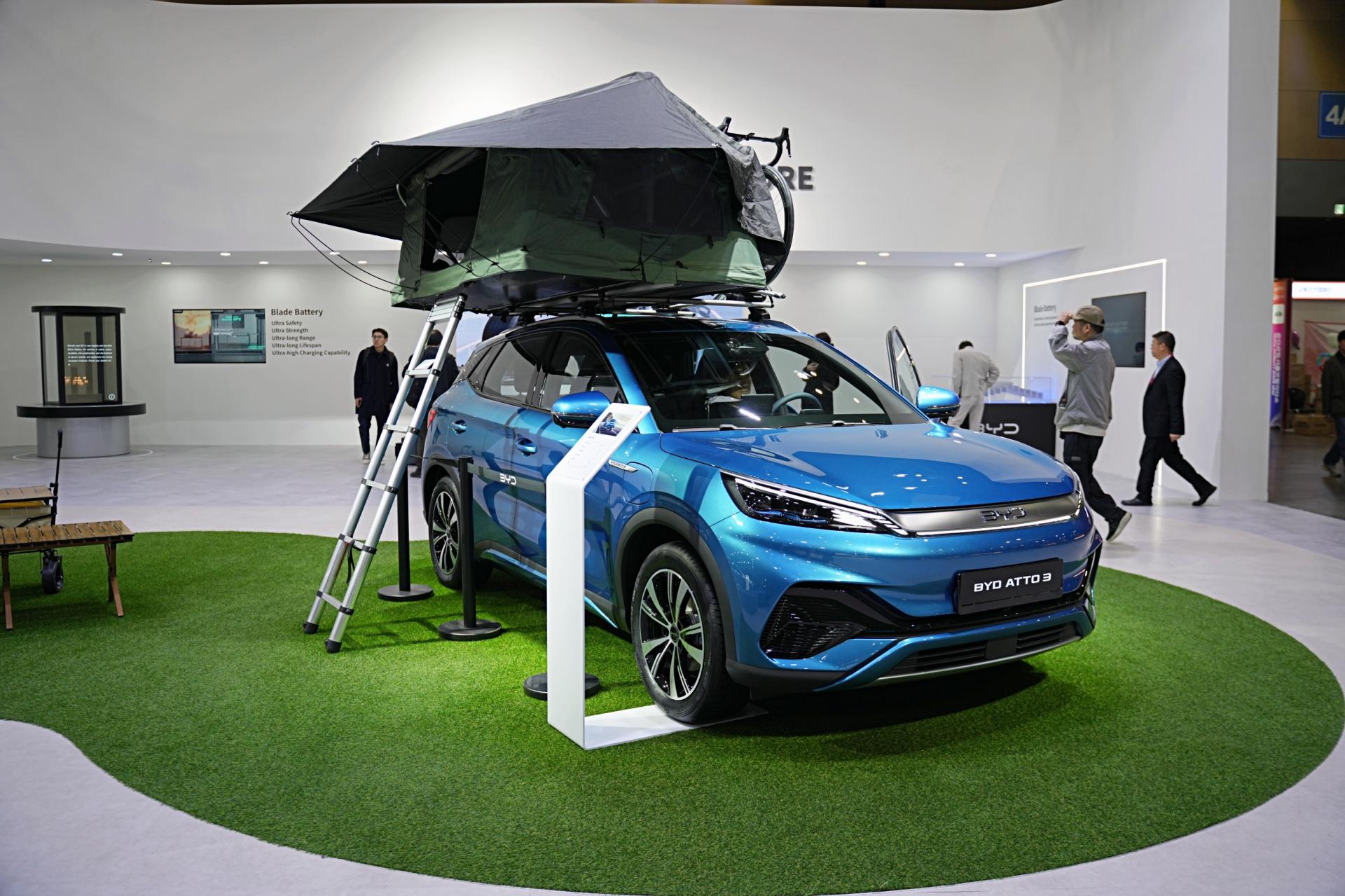 그리고 가장 큰 규모의 부스 중 하나는 바로 중국의 BYD였습니다. 올해 공식적으로 한국 진출을 본격화 하고 있는 BYD인만큼 다양한 중국산 전기차를 전시하여 관람객들의 시선을 빼았고 있었습니다. 공격적인 가격 정책이 있는 만큼 일반 소비자들도 그냥 지나치지 않고 차량의 실내외를 자세히 둘러보는 모습이 많이 보였습니다.