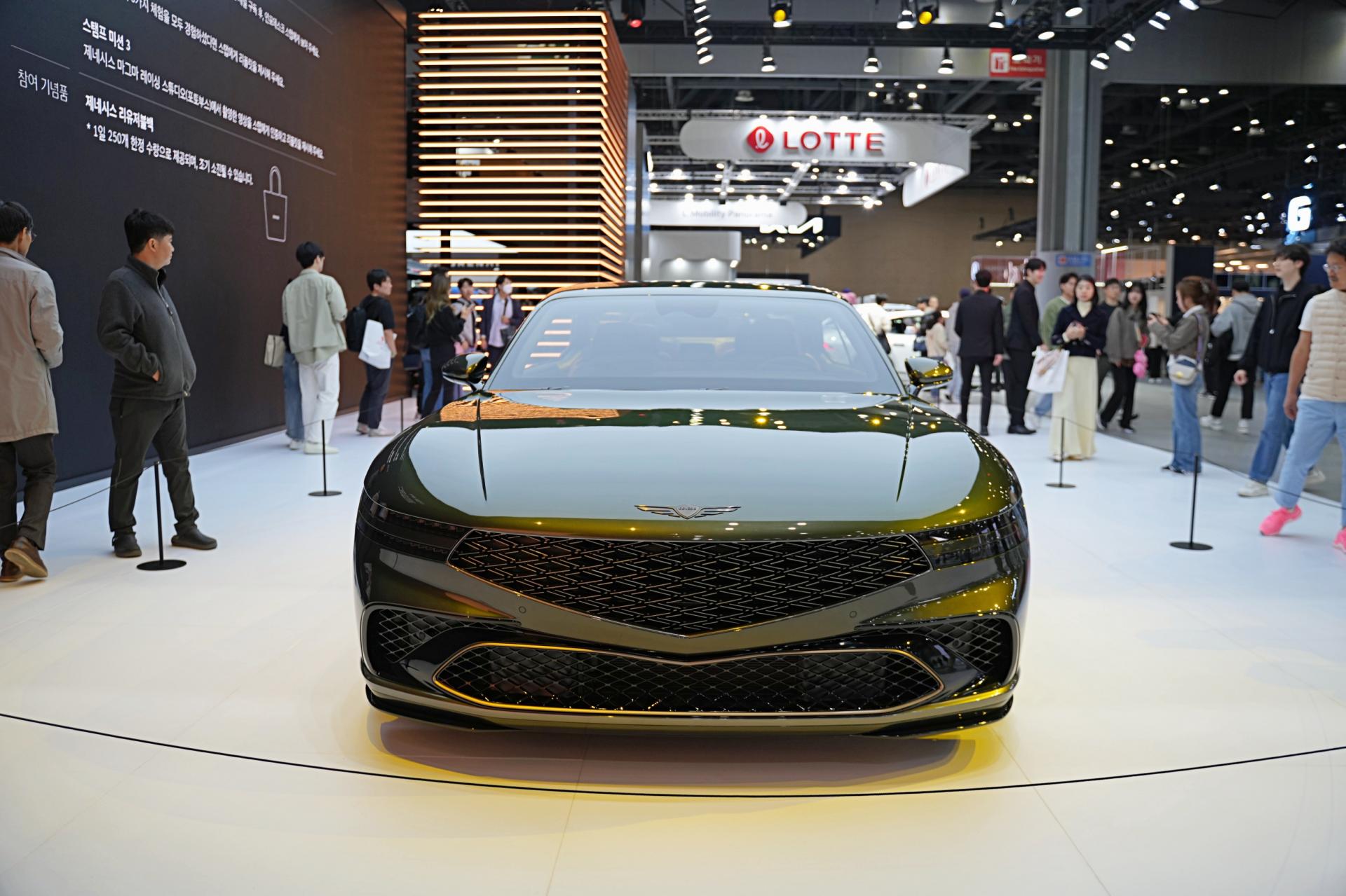 기존의 G90을 기반으로 완성된 2도어 콘셉트 모델이 부스의 중앙에 공개되었습니다. 전면부의 두줄 헤드램프와 그릴이 정말 멋지게 자작되어 있었고, 디자인 뿐만 아니라 새로운 기술까지 적용되어 있다고 합니다.