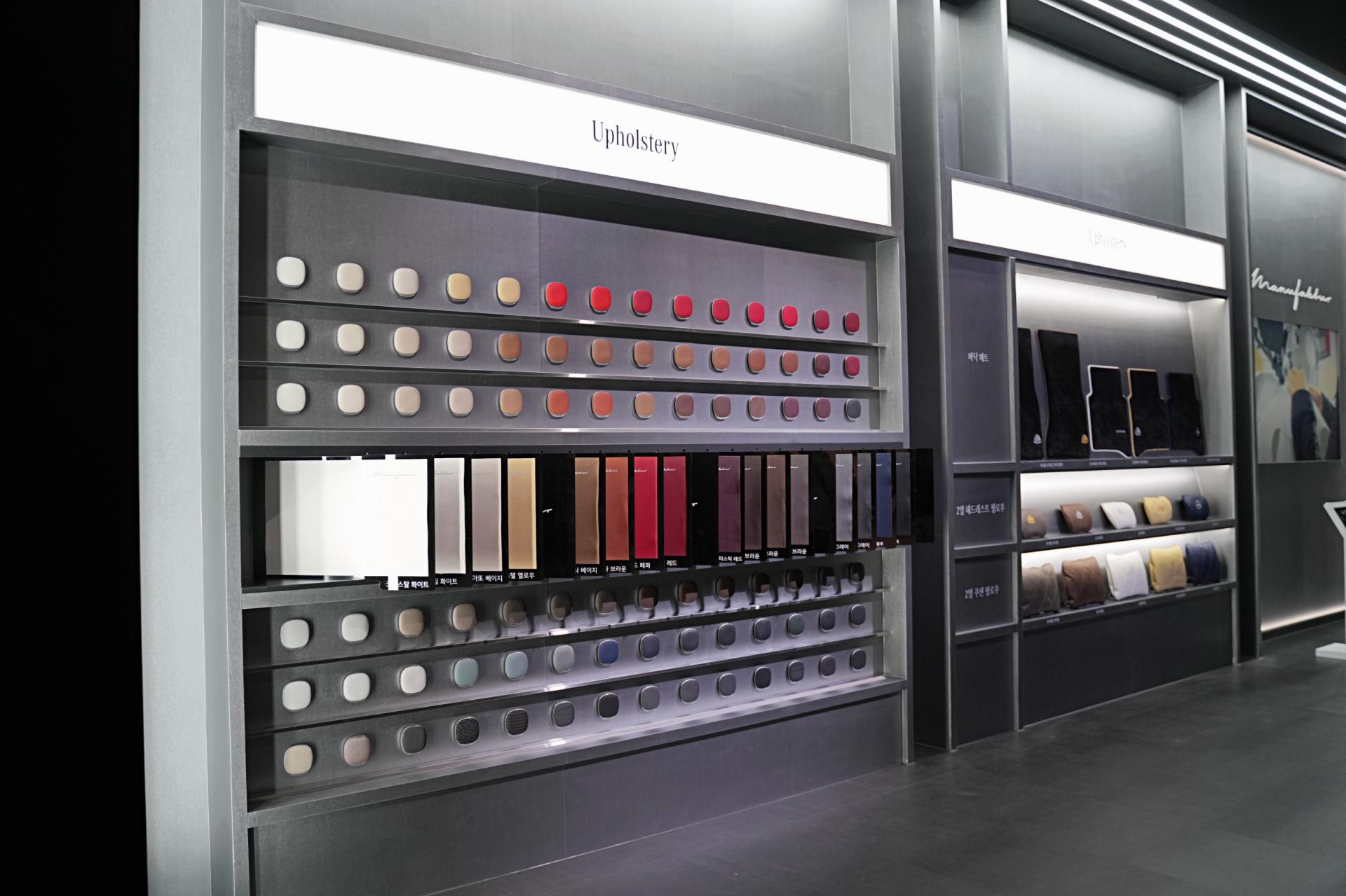 개인 맞춤 제작이라는 '마누팍투어'의 컨셉이 잘 드러나게 다양한 컬러, 소재를 직접 보고 선택할 수 있는 컨셉의 공간이 준비되었습니다.