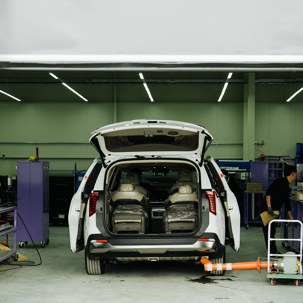 카니발 하이리무진의 주력 생산 거점으로 샤시 검사,